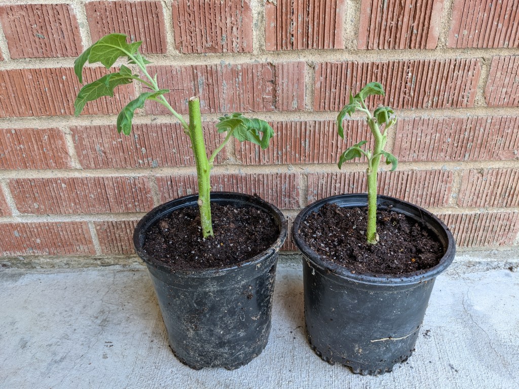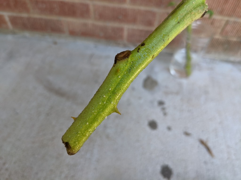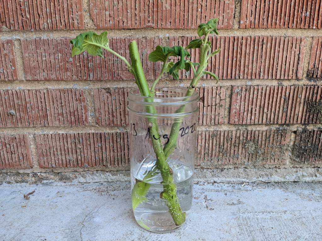 The end of the cuttings started to rot. I cut off the rot and moved them to pots outside in full shade.