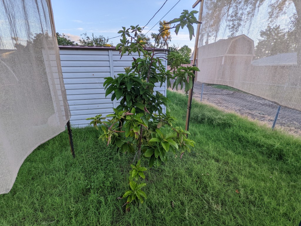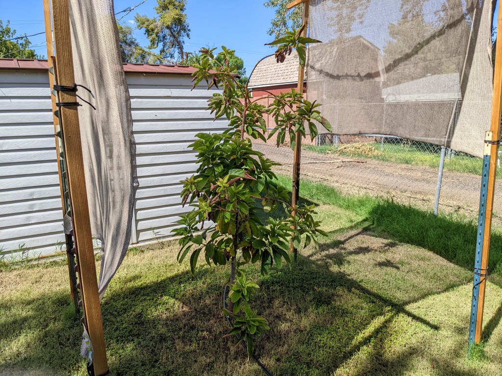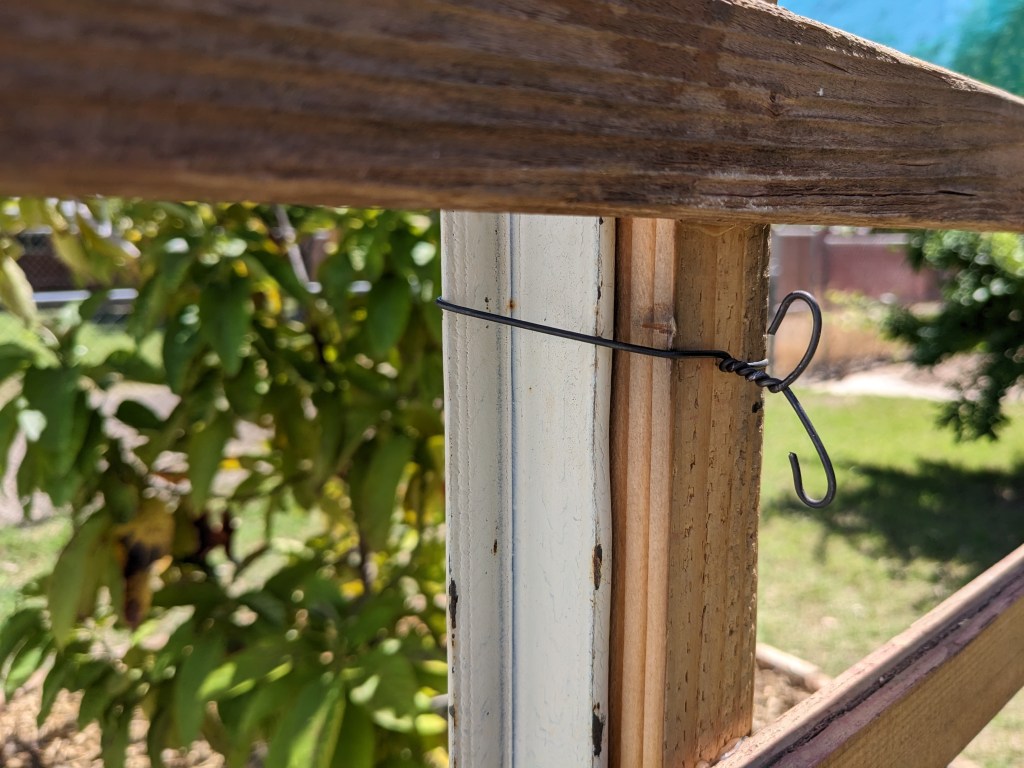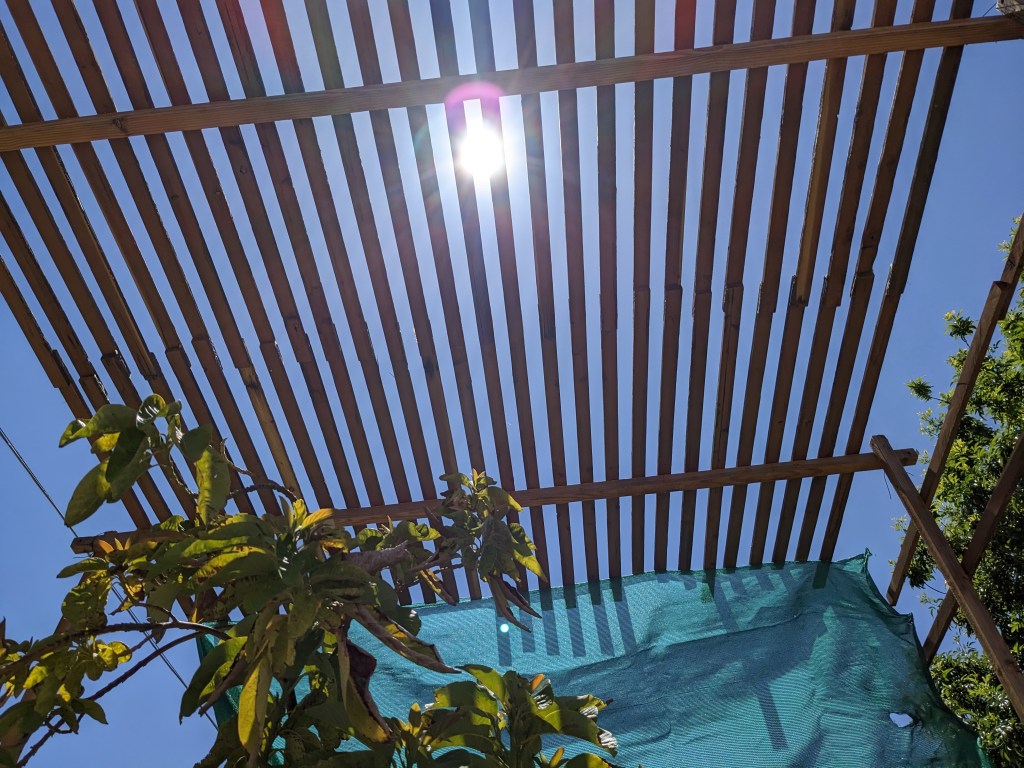 Put up shade. This year I made shade from old 2x boards I found in the alley. I didn’t make it wide enough so I had to tack on some shade cloth.