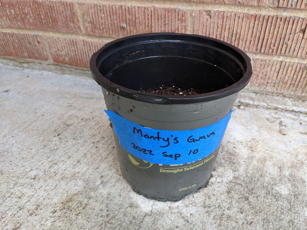 Planted seeds from a white guava grown by Monty I got at a CRFG meeting. All the seeds are in one pot. I plan to separate them after they germinate. I set the pot in a shade house out side.