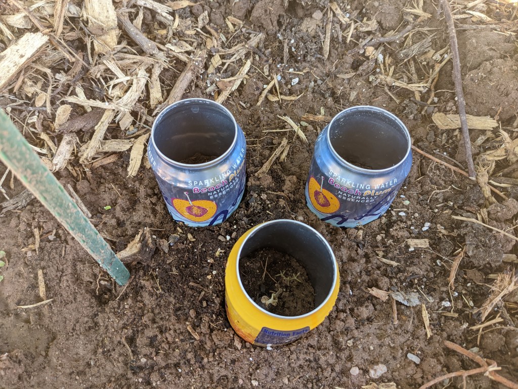 I Put aluminum can rings around the sprouts to protect them from cut worms.