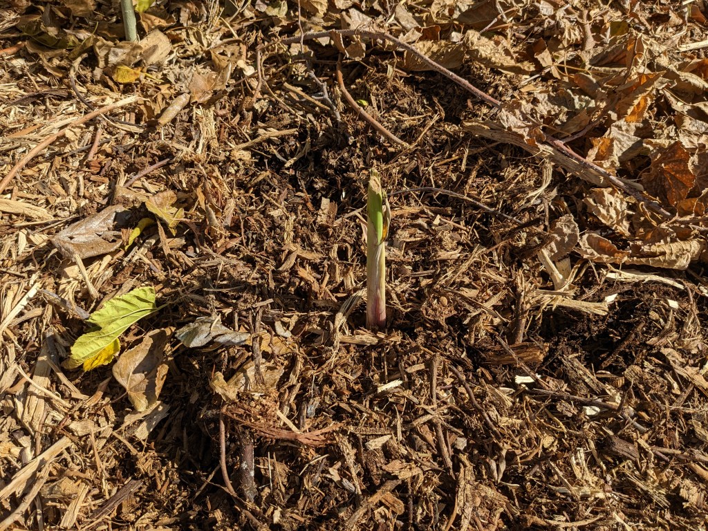 I got a little sugar cane start at the CRFG fall plant sale. I stuck it in the ground when I got home and watered it in.