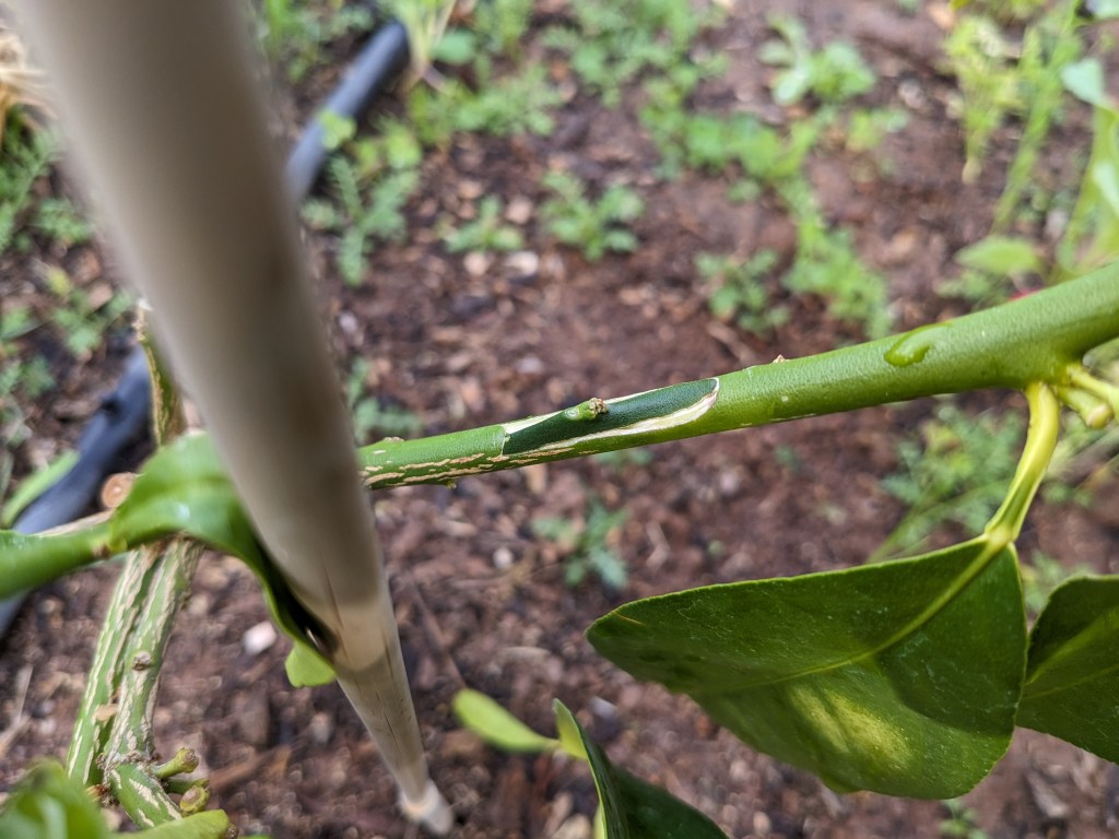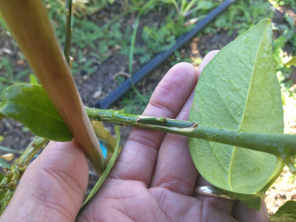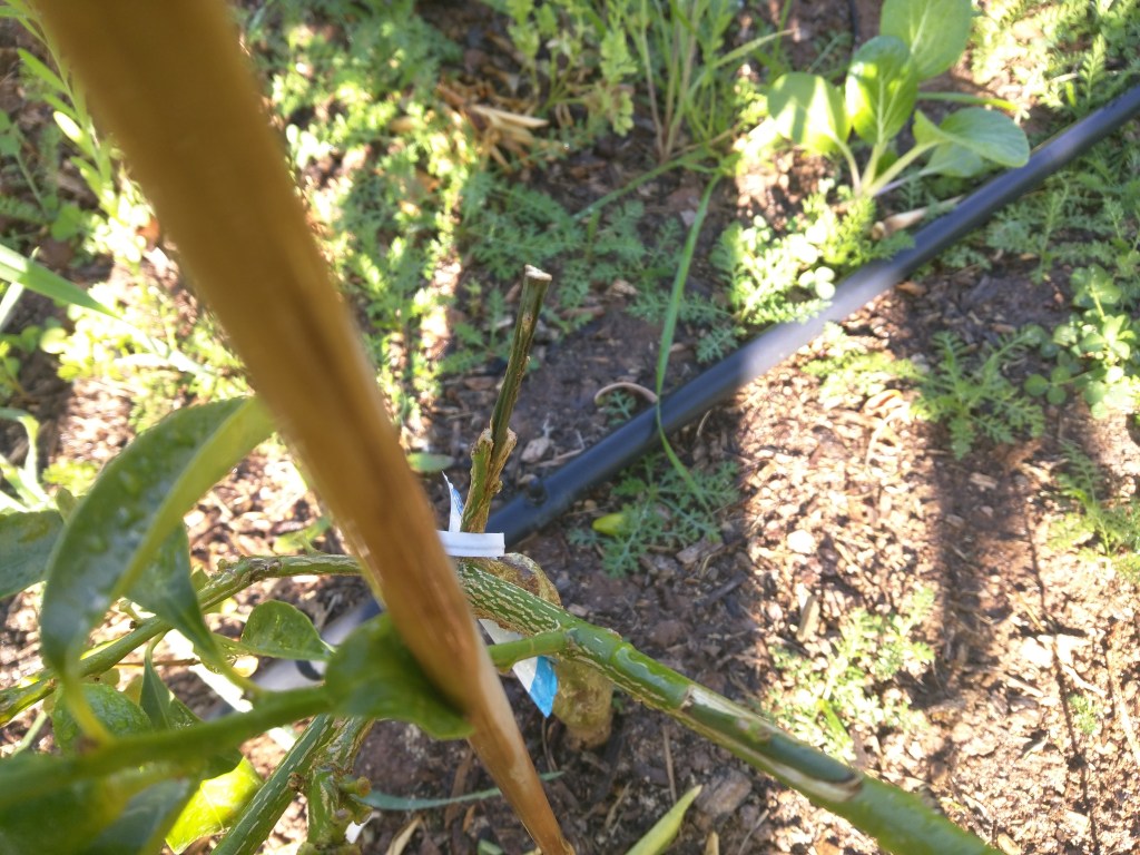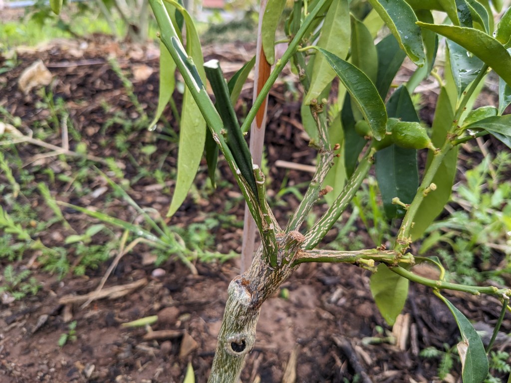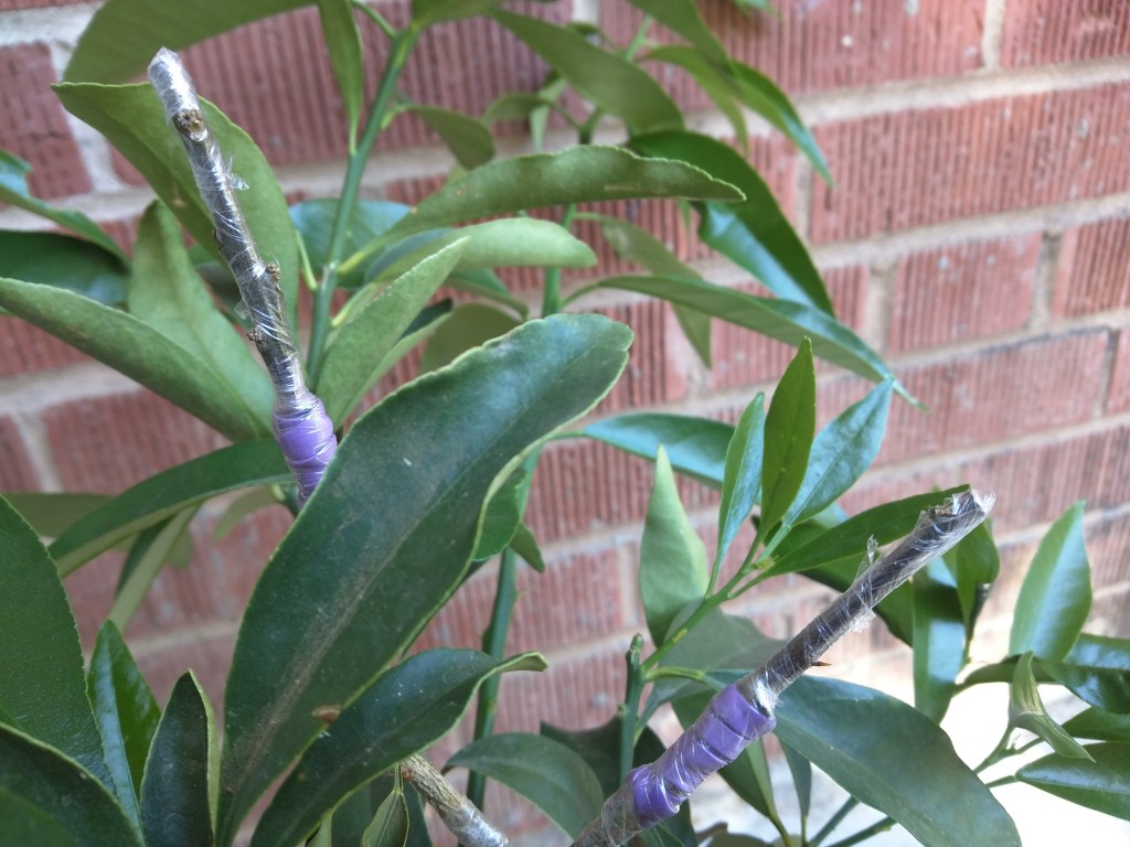 I put two chip bud grafts and a cleft graft on this tree. All of them were Meiwa Kumquat (CRC 3833) that I ordered from the CCPP.