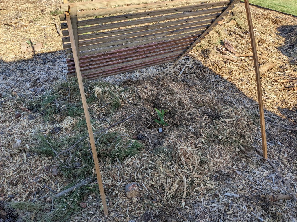 I got a macadamia tetrafilia at the spring CRFG plant sale. I put it in the ground today. I mixed 2 cups of soil sulphur and a tablespoon of Arizona’s Best citrus fertilizer I the backfill and watered it with run off from my AC with some michroriza fungi tossed in. Then covered it with a 50% shade panel so it gets shade starting at noon.