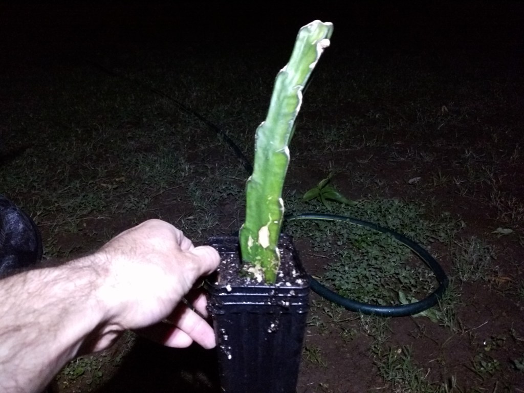 I took home a dragon fruit cutting from a CRFG meeting and put it in a pot of big box potting soil (mostly peat moss) and set the pot where it would get shade after 10am.