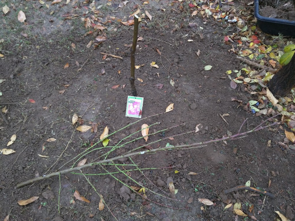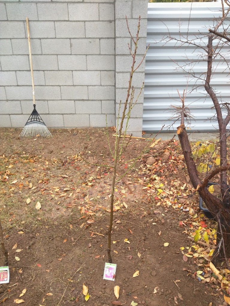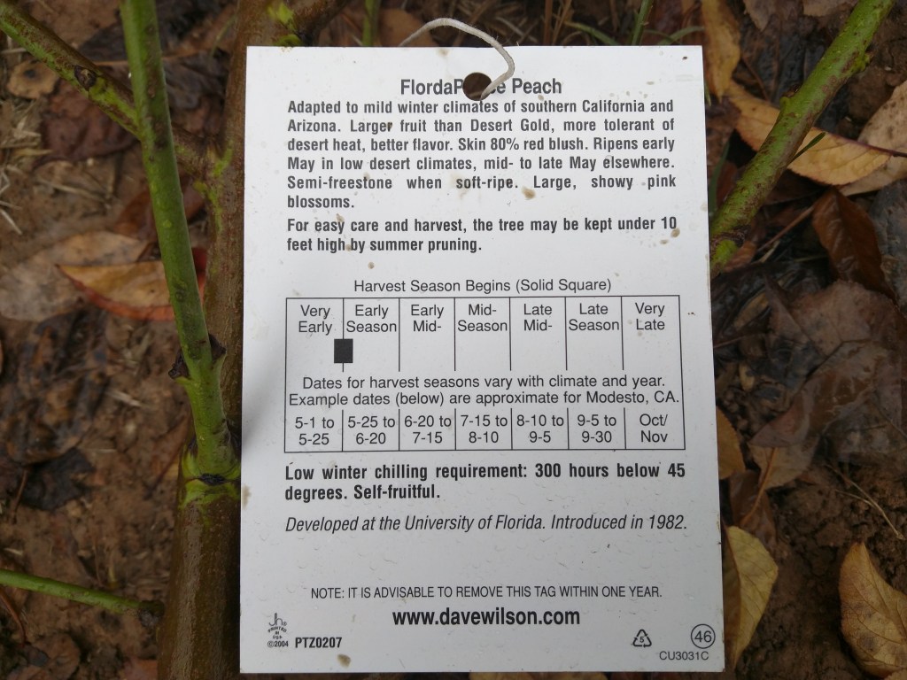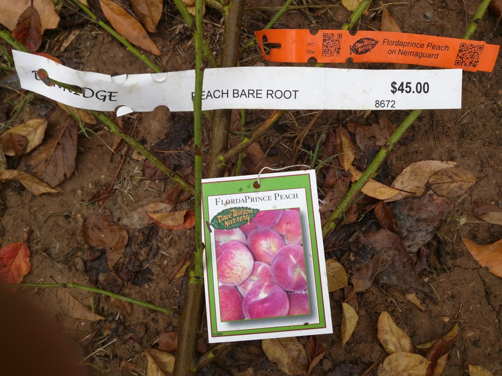 Planted a bare root Florda Prince peach on Nemaguard rootstock that I bought from Berridge Nursery for $45. I cut the tree back to the height of my knee.